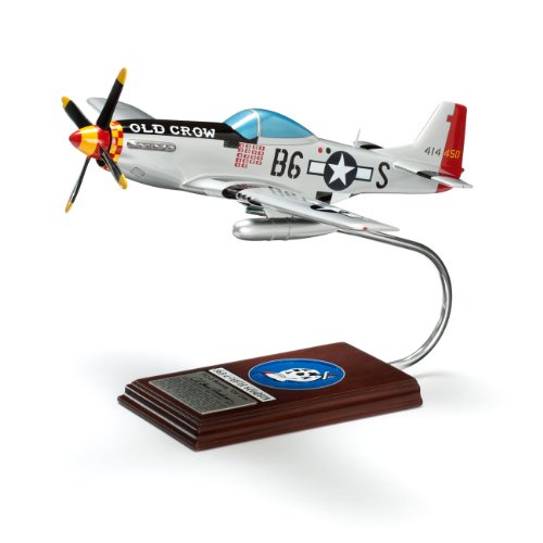 In 1944, Capt. Clarence "Bud" Anderson began his second WWII combat tour with the 357th Fighter Group. Assigned a North American Aviation P-51D Mustang in standard olive-drab camouflage, Anderson reported to his ground crew that the plane contrasted starkly with the snow then falling over Germany. His crew spent the next night stripping and polishing "Old Crow" until its original metal was a gleaming silver. Old Crow carried Anderson safely through 116 missions without being hit by enemy fire. You can own a piece of WWII history with this collector's model of Old Crow. Meticulously hand-crafted 1:24-scale model was created using authentic aircraft blueprints and reference photographs and reproduces the markings of the actual airplane in stunning detail. Adding to its authenticity, this model was personally signed by Col. (Ret.) Bud Anderson. Each limited-edition model is carved from fine Philippine mahogany and hand-painted. Includes removable wood base and Certificate of Authenticity. Wingspan: 18.25". Length: 16.2". Ages 14 and up (not a toy). Keep in a protected, dry environment. Imported.
